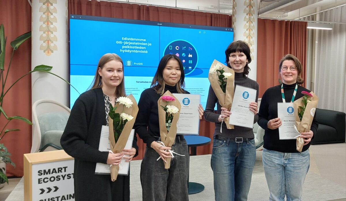 Seuraavat työt palkittiin ja esiteltiin ProGIS:n pikkujoulutapahtuman opinnäytetyöseminaarissa Helsingin Maria 01:ssa 8.12.2025: